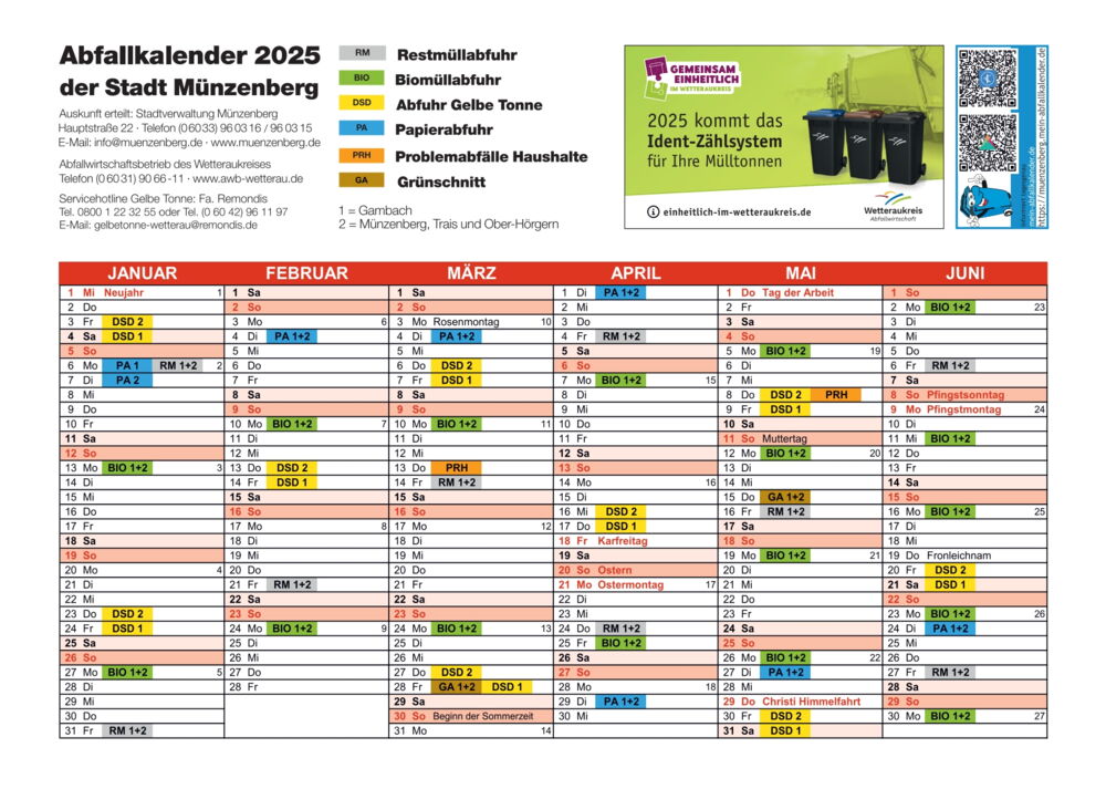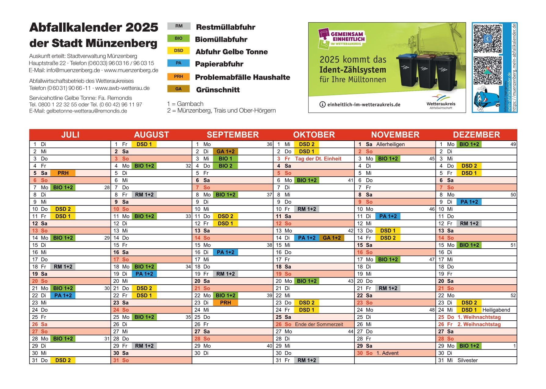 Die aktuelle Abfallsatzung der Stadt Münzenberg finden Sie auf unserer Homepage unter Satzungen.