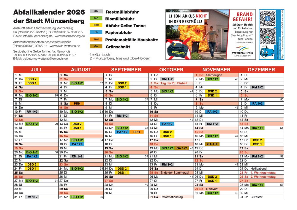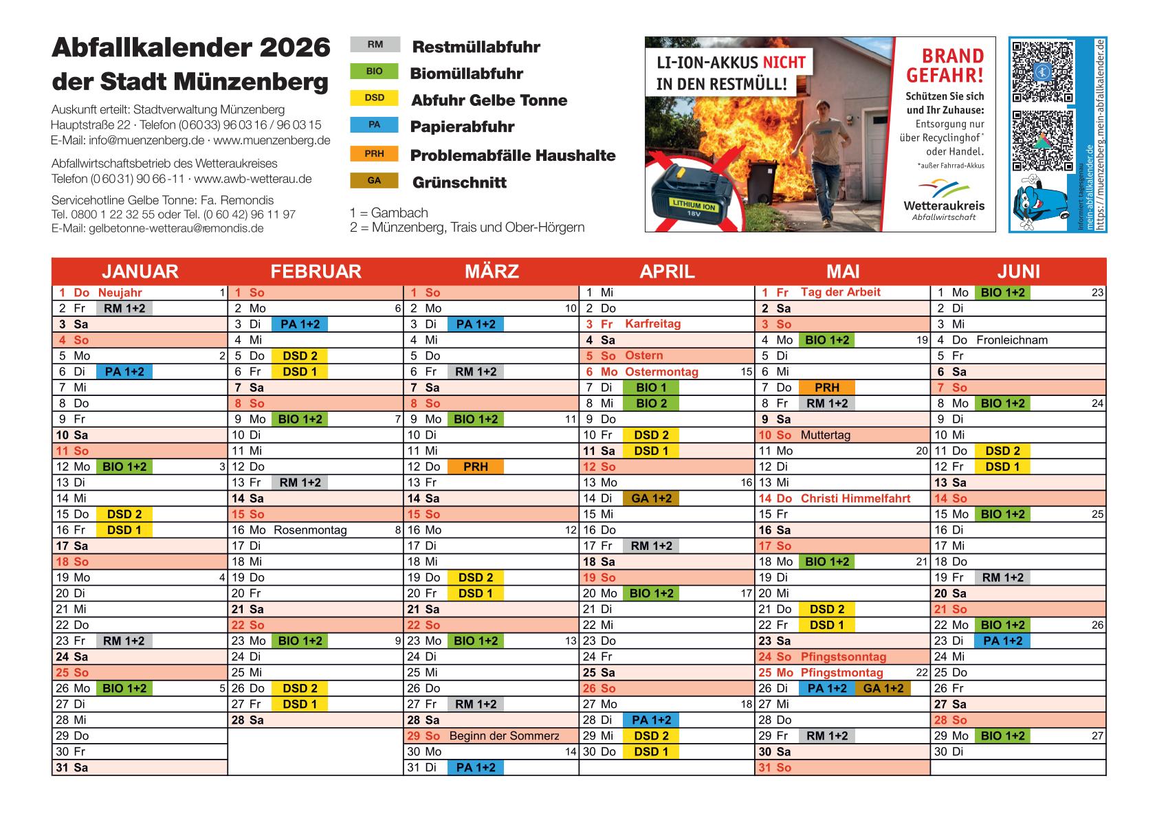 Die aktuelle Abfallsatzung der Stadt Münzenberg finden Sie auf unserer Homepage.