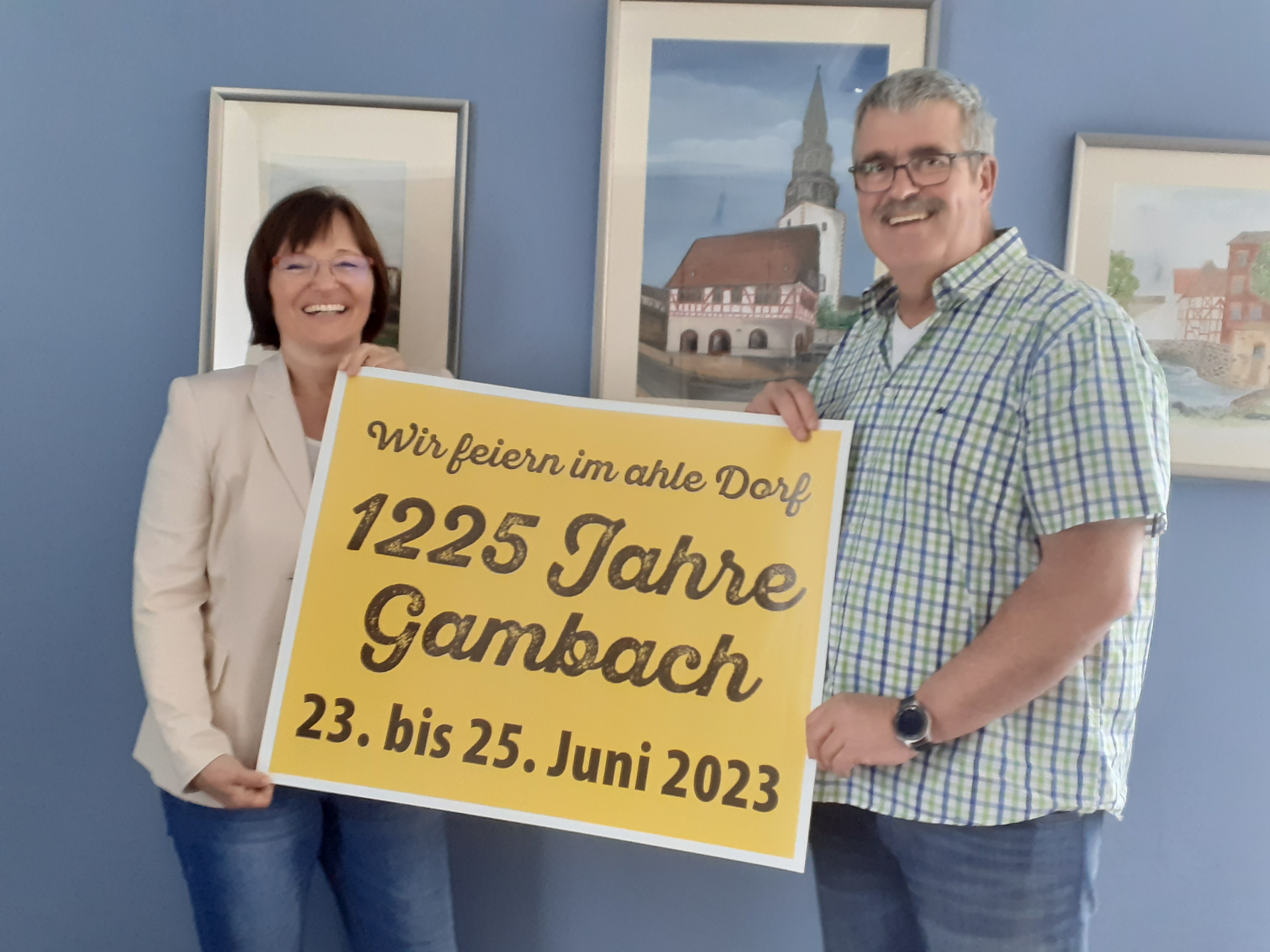 Vom 23. bis 25. Juni 2023 begeht Münzenbergs größter Stadtteil unter dem Motto „Gambach präsentiert sich“ sein 1225jähriges Bestehen. Gefeiert wird im historischen Herzen zwischen Bürgerplatz und evangelischer Kirche, dem berühmten „Gambacher Ei“. Der Spitzname erklärt sich mit einem Blick auf den ursprünglichen Kern des Dorfes Gambach, der aus der Vogelschau aussieht wie ein Ei. Die Münzenberger Bürgermeisterin Dr. Isabell Tammer und der Gambacher Ortsvorsteher Stefan Grieb freuen sich jetzt schon auf viele Gäste zum Festwochenende 1225 Jahre Gambach am letzten Juni-Wochenende 2023.