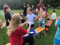 Tretbootfahren, Adventure-Minigolf, Crépesbacken, Grillen, T-Shirt-Malerei, Lagerfeuer und endlich wieder jede Menge Badespaß am Gederner See – da hatten die Leiterin des Kinder- und Jugendbüros der Stadt Münzenberg Anja Keil und ihr Betreuerteam auch für das Jubiläumsjahr wieder ein spannendes Zeltlagerprogramm für rund 30 Kinder auf die Beine gestellt.