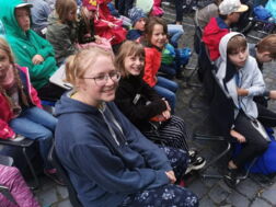Trotz des sehr herausfordernden Wetters verbrachten die Kinder der Münzenberger Ferienspiele am letzten Donnerstag einen rundum spannenden Tag. Mit zwei Reisebussen ging es zu den Burgfestspielen in Bad Vilbel. In Plastikcapes gehüllt und mit dem einen oder anderen Regenschauer bedacht, verfolgten die Kinder trotzdem gut gelaunt und gebannt dem Stück „Jim Knopf und der Lokomotivführer.