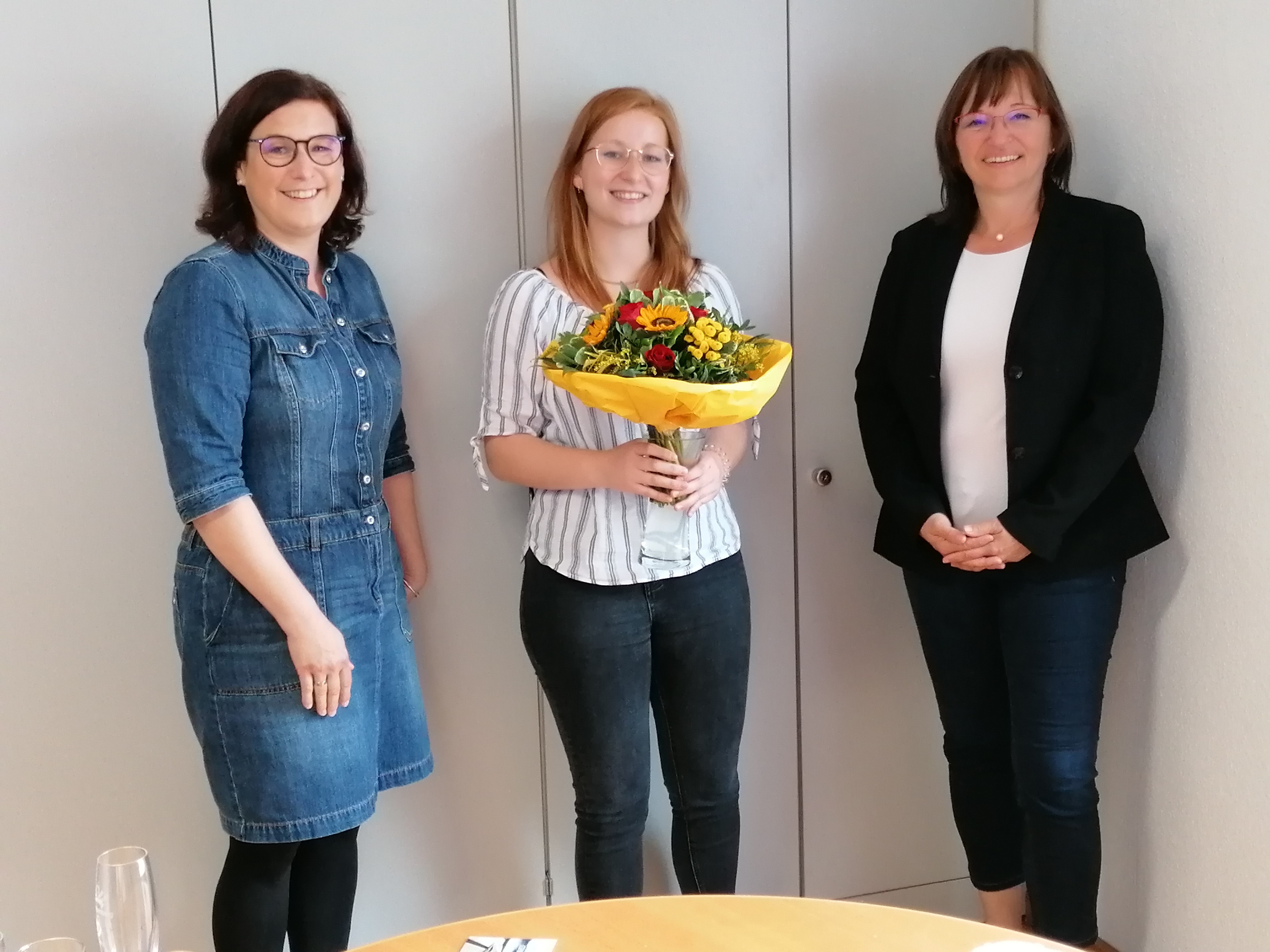 In einer kleinen Feierstunde gratulieren die Bürgermeisterin Dr. Tammer für den Magistrat und die Personalratsvorsitzende Dorothee Weckmann für das Personal mit einem Blumenstrauß sowie einem Gutschein.