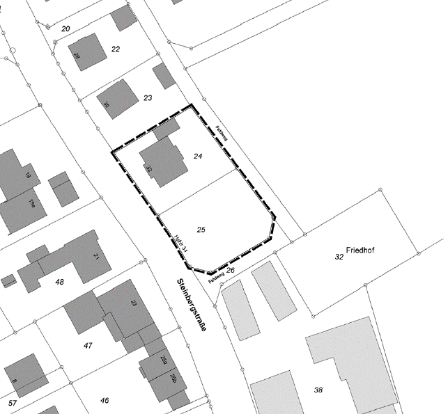 Planziel der Aufstellung der Innenbereichssatzung ist die Schaffung von Baurecht für das Grundstück Steinbergstraße 34.