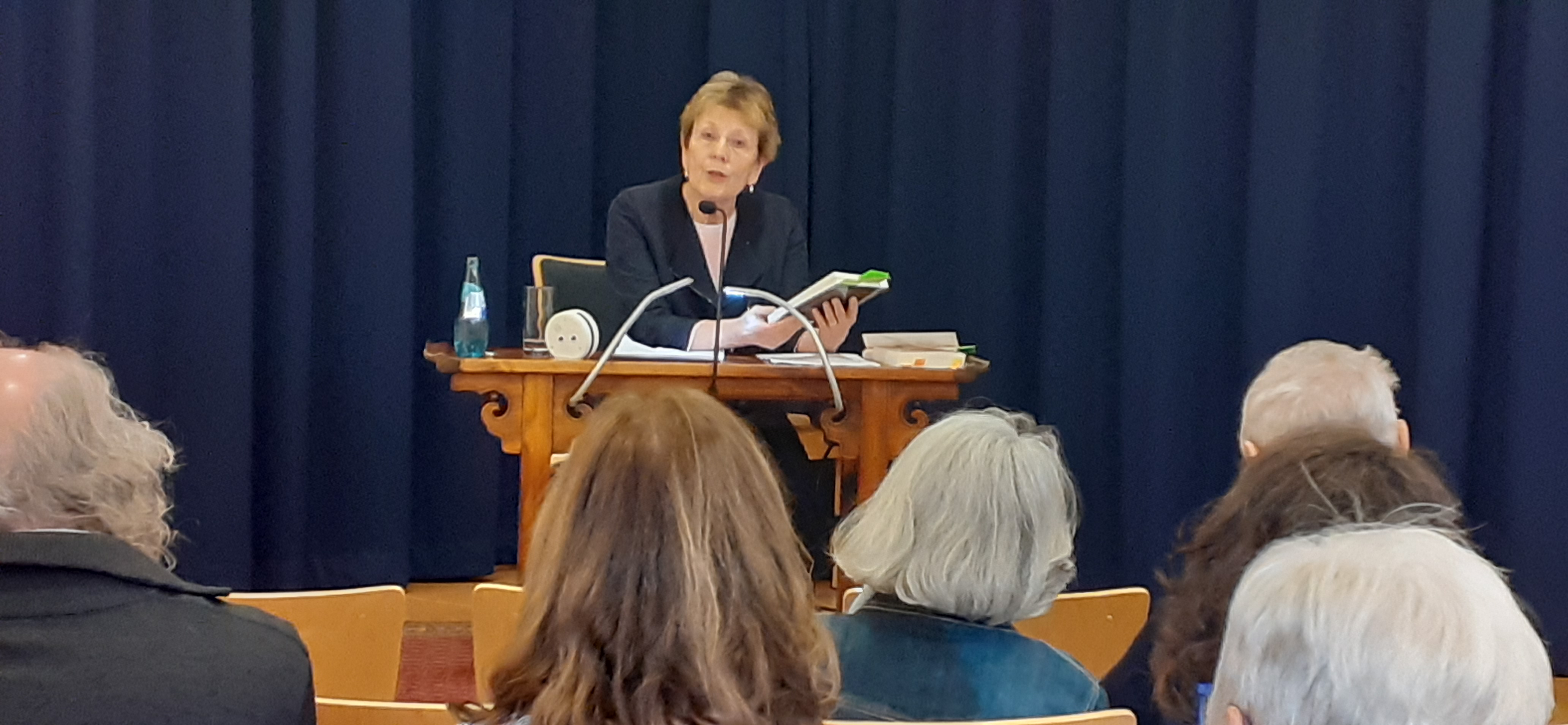 Mit der Rockenberger Autorin Ursula Luise Link endete die Premieren-Saison der von der Stadt veranstalteten Lesungsreihe „Blaue Stunde“. Mit ihren Buchauszügen aus "Die Farm der Hühner" sowie "Utopisch. Ideen und ihre Geschichten" und aus "Erzähl Dir ZeitGeschichten“ begeisterte Ursula Luise Link ihr Publikum im Kulturhaus Alte Synagoge.