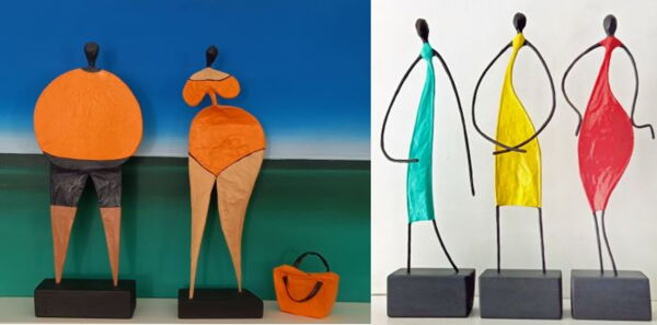 "Meine Figuren sind auf das Wesentliche reduziert. Der Betrachter kann sich leicht in der einen oder anderen Figur wiederfinden. Manchmal bin ich selbst überrascht, welche Eigenheiten die Figuren beim Trocknen des Papiers entwickeln", sagt Ursula Rickert-Rieb, die ihre Geschöpfe gerne auf Steinen platziert, die sie in der Landschaft gefunden hat, oder sie in alte Fenster- oder Bilderrahmen stellt.