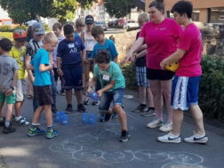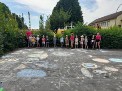 Für insgesamt über 100 Kinder stehen in den nächsten beiden Wochen zahlreiche spannende und abwechslungsreiche Aktivitäten auf dem Programm. Diese Woche dreht sich alles um das Thema „Ab ins Weltall“ mit Raketen- und Planetenbauaktionen, dem Basteln von Ufos (Hosentaschen-Frisbees), einem Kreidemalwettbewerb, dem Besuch eines mobilen Planetariums, Wasserspiele, dem Ausflug in den Vogelpark Schotten, einem Schwimmbadbesuch und vielem mehr.