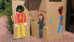 Und das setzten die Kinder tatkräftig mit Pappe, Pinsel und Farben um.