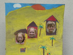 Hoch konzentriert ging es am letzten Mittwoch bei den Gruppen der Münzenberger Ferienspiele zu. Auf große Pappen wurden „Durchguckbilder“ gemalt.