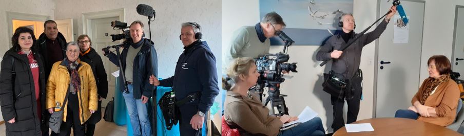 Ein Besuch im Bauhof zur Materialbesorgung sowie vor allem in den drei städtischen Flüchtlingsunterkünften und Gespräche mit den dort untergebrachten Menschen standen auf dem Drehplan. Die Flüchtlinge waren sehr offen und hatten keinerlei Scheu vor der Kamera von ihren Problemen bei Arbeits- und Wohnungssuche zu erzählen. Ein afghanischer Flüchtling hat sogar ein Interview zu seinen Fluchtgründen und der langen Fluchtroute nach Deutschland gegeben. Außerdem ging es für das TV-Team in die Kita Kinderbrücke und ins Kulturcafé Nebenan. Dessen Mitglieder sind schon seit fast 10 Jahren intensiv bei der Integration geflüchteter Menschen engagiert. Inzwischen sind einige der allerersten Betreuten selbst im Kulturcafé im Einsatz.