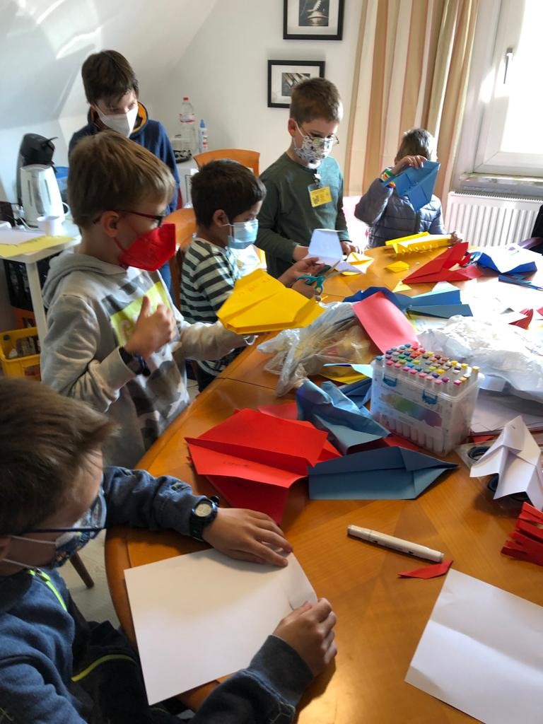 Nach ersten eigenen Experimenten und Testläufen, wurden die Papierflieger getrimmt und verbessert. Die Ergebnisse wurden anschließend bei einem Wettbewerb im Weit- und Langfliegen auf die Probe gestellt.