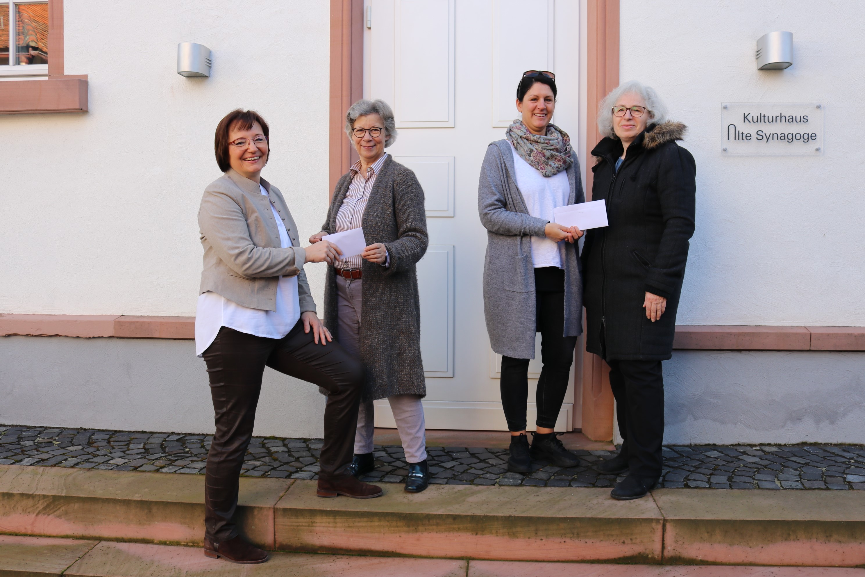 Im Rahmen der Durchführung des Rathausfestes im Münzenberger Stadtteil Gambach im Dezember 2022 haben die Verantwortlichen des Freundeskreises erklärt, wie immer zu verfahren; nämlich den erwirtschafteten Gewinn für Maßnahmen in der Burgenstadt zu verwenden. Der Vorstand hat den Betrag auf 1000 € aufgestockt und entschieden, mit dem Geld die drei städtischen Kindergärten und die Johanniterschule mit ihren zwei Standorten zu bedenken. Für jede genannte Einrichtung stehen somit 200 € zur Verfügung. Das Vorstandsmitglied Heike Bolz-Guckert (2. von links) überreicht der Bürgermeisterin der Stadt, Dr. Isabell Tammer, das Geld für die Kindergärten, die stv. Vorsitzende des Vereins, Steffi Kerschner (2. von rechts), übergibt den anderen Teil der Spende an die Schulleiterin der Johanniterschule Münzenberg-Gambach, Petra Müller.