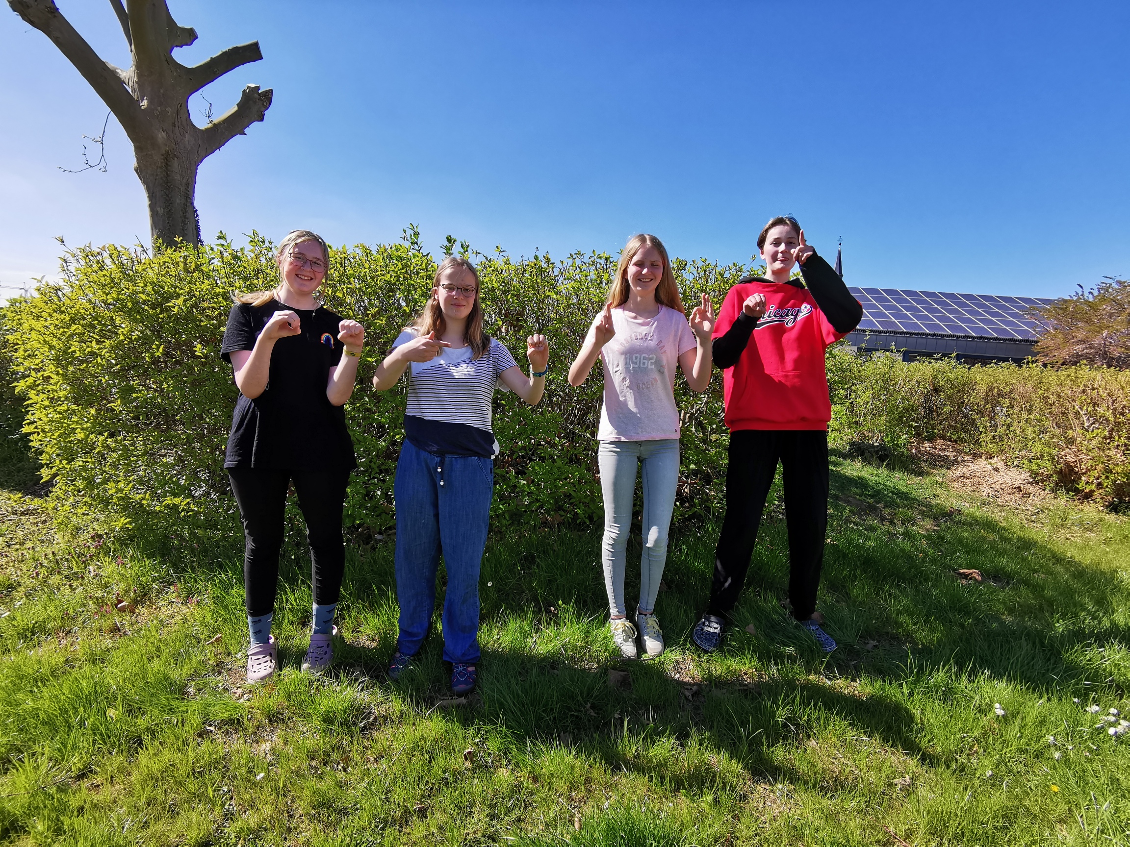 Jona, Lotta, Finnja und Jill stellten am Ende das Wort „OSTERFEZ“ im Fingeralphabet dar.