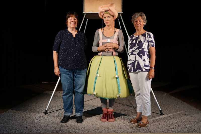 Heike Bolz-Guckert, Freundeskreis Burg und Stadt Münzenberg e.V. (rechts) und Heike Mühlenbruch, Kultur und Stadtmarketing Stadt Münzenberg (links), eröffneten offiziell mit Annegret Geist und „Ich bin Ich“ den „Kleinen Kinder-Kultursommer“ ( Foto: Uwe Müller).