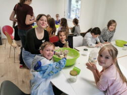 Gleich an zwei Orten - nämlich im Jugendzentrum Gambach und gleichzeitig im Alten Rathaus Gambach - wurde am letzten Dienstag schwer gewerkelt. Gemeinsam mit dem Kinder- und Jugendbüro konnten rund 30 Kinder lernen, wie man ganz einfach eine ungiftige Knete herstellen kann. Da wurde abgemessen, gemischt und alles gut durchgeknetet, bis die Masse geschmeidig war. Anschließend wurde sie mit Lebensmittelfarbe bunt gemacht. Finja, Janna und Nick waren mit vollem Eifer dabei, so dass am Ende noch Zeit blieb, selbst geknetete Figuren und Formen zu erraten.