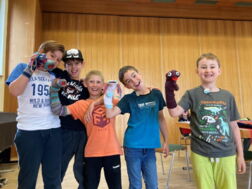 Passend zum Wochenthema „Theater, Theater, Theater“ bastelte die Gruppe von Robin, Finian und Bastian am letzten Montag mit ihrer Ferienspielgruppe kunterbunte Handpuppen. Diese werden am Freitag bei der großen Abschlussshow zum Einsatz kommen.