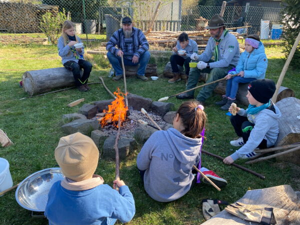 Pastor Matt gab allen einen kurzen Impuls zum bevorstehenden Palmsonntag. „So wie Jesus in Jerusalem einzog, so soll er auch in unsere Herzen einziehen“, lautete seine Botschaft. Nach so viel Abenteuer sammelten sich Groß und Klein am Lagerfeuer und genossen die an langen Stöcken gegrillten Stockbrote. Wer mochte, konnte sich einen Schokoriegel in das fertig gebackene und noch warme Stockbrot stecken. „Der schmilzt da drin, das ist soooo lecker“, erklärte einer der OSTERFEZER. Ein großer Dank gilt den Pfadfindern und allen ehrenamtlichen Helferinnen und Helfern der Christus-Gemeinde, die durch ihren Einsatz diesen Nachmittag möglich gemacht haben!