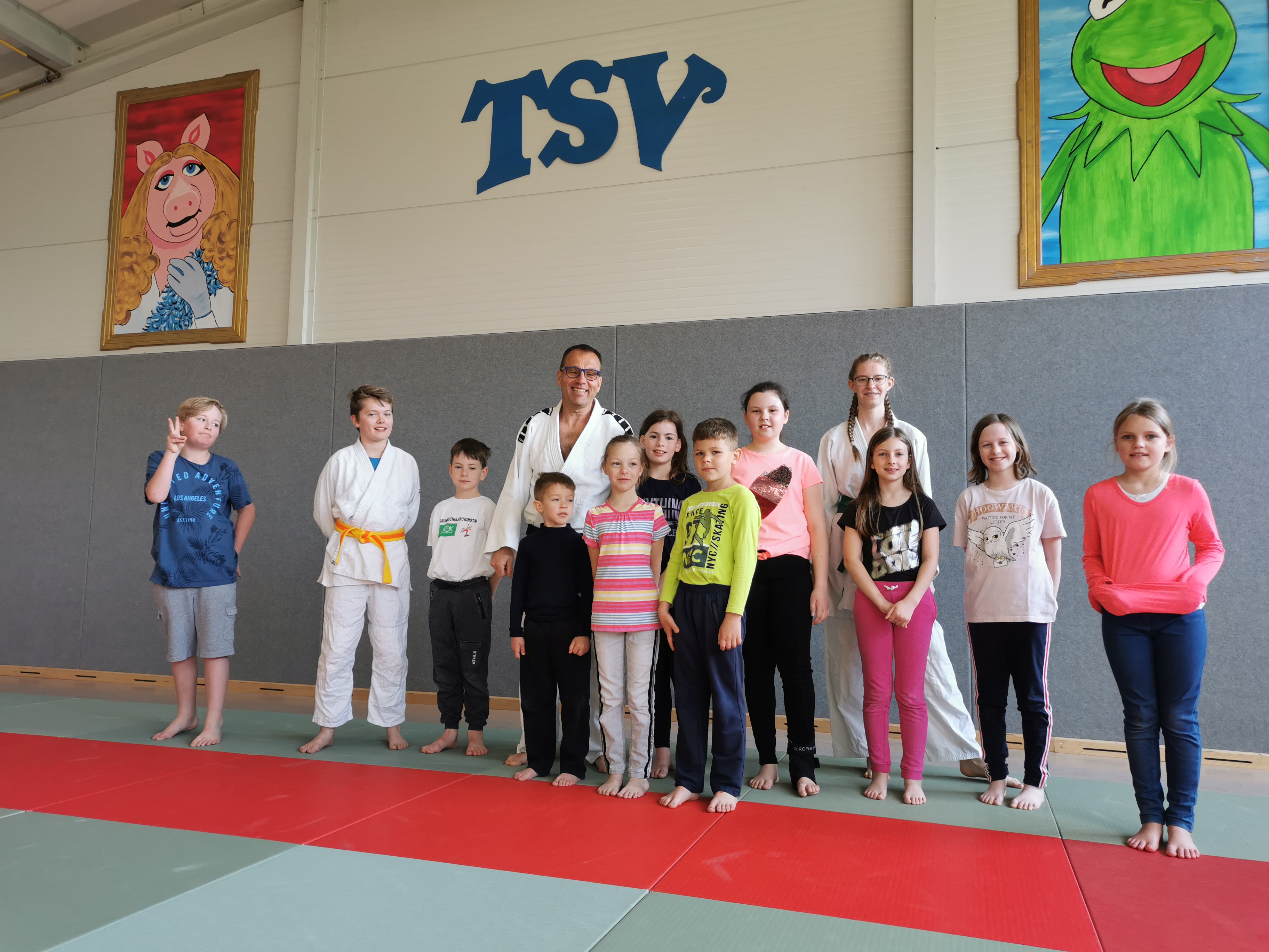 Stark beeindruckt waren die Kinder von dem großen Knall, wenn Trainer Andreas und seine Helfercrew die Fallübungen vormachten und auf die Matte aufschlugen.