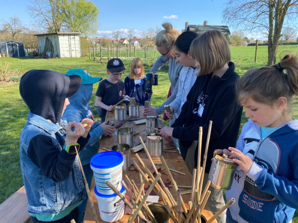 Beim Obst- und Gartenbauverein Münzenberg (OGV) strahlten die Sonne und die Kinder um die Wette. Mit Feuereifer bauten 20 Teilnehmerinnen und Teilnehmer beim OSTERFEZ Ferien(S)pass Insektenhotels aus Recyclingmaterialien. Die Kinder haben eifrig gesägt, gebohrt, geschnitten und geleimt. Stolz konnte so jedes Kind sein selbst gebautes und verziertes Insektenhotel mit nach Hause nehmen. Auf dem großen Gelände des OGV entdeckten die OSTERFEZ-Kinder unter Führung von Bianca Fassl natürliche Insekten-Behausungen.