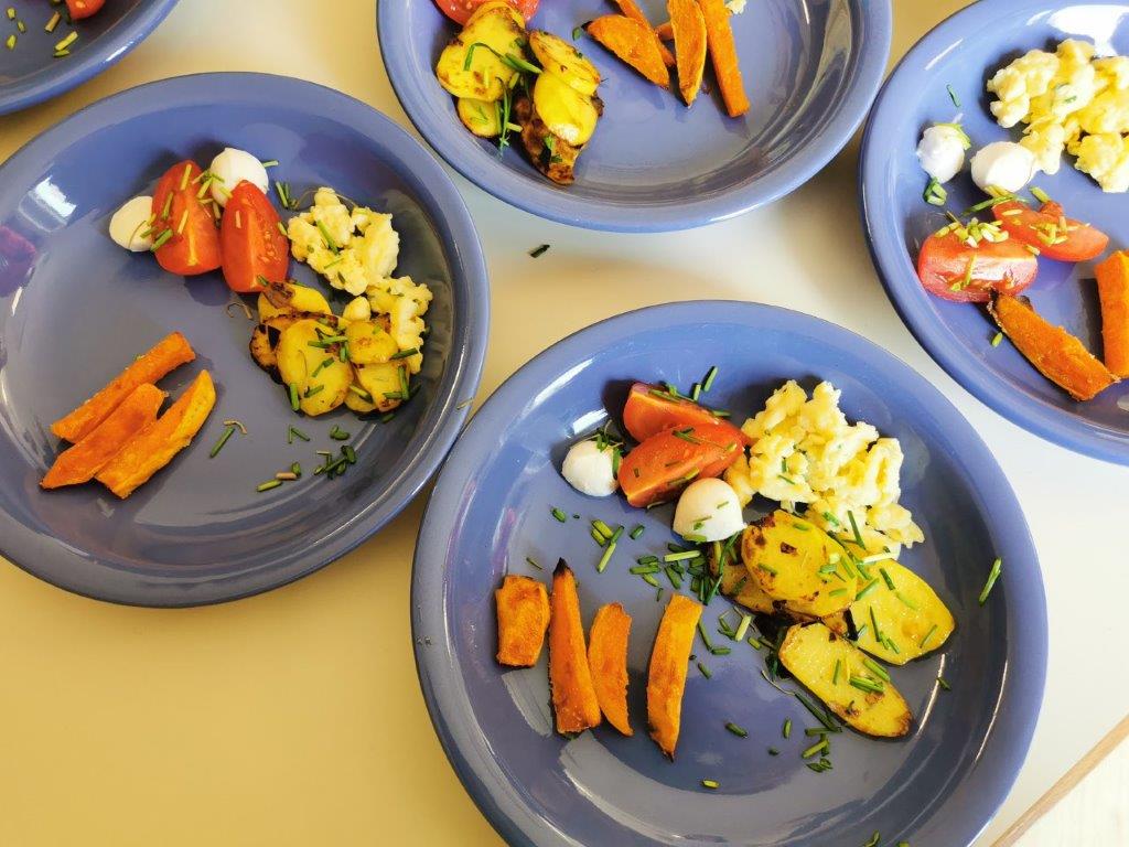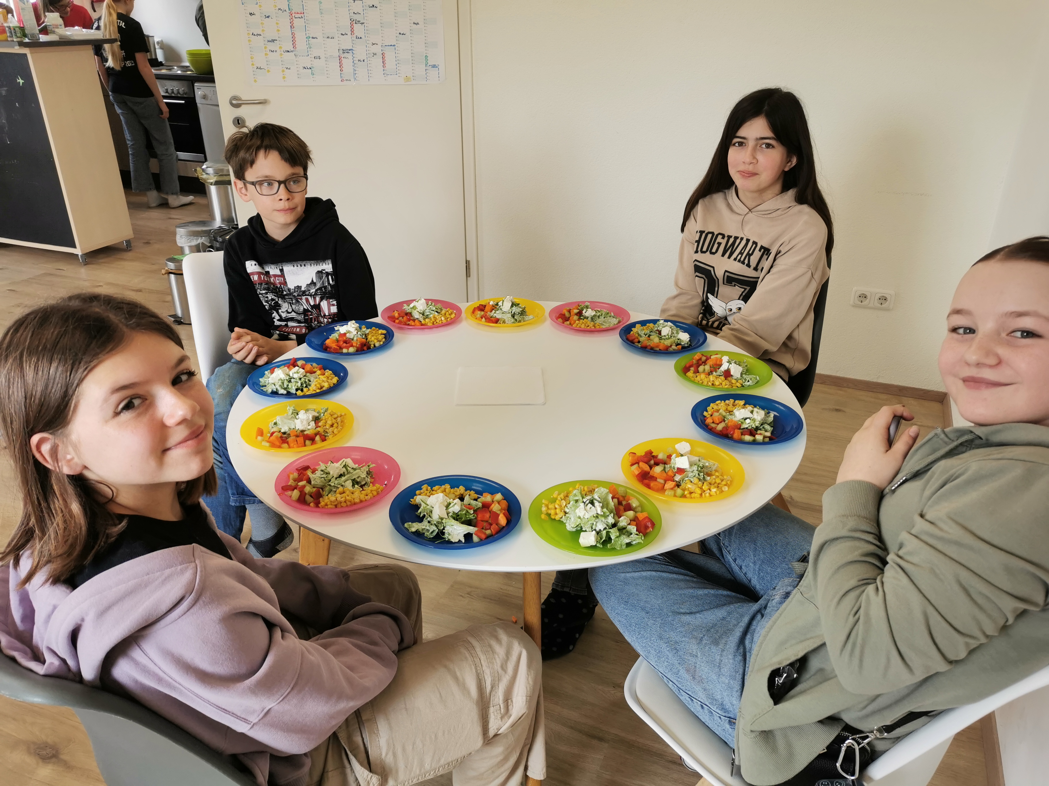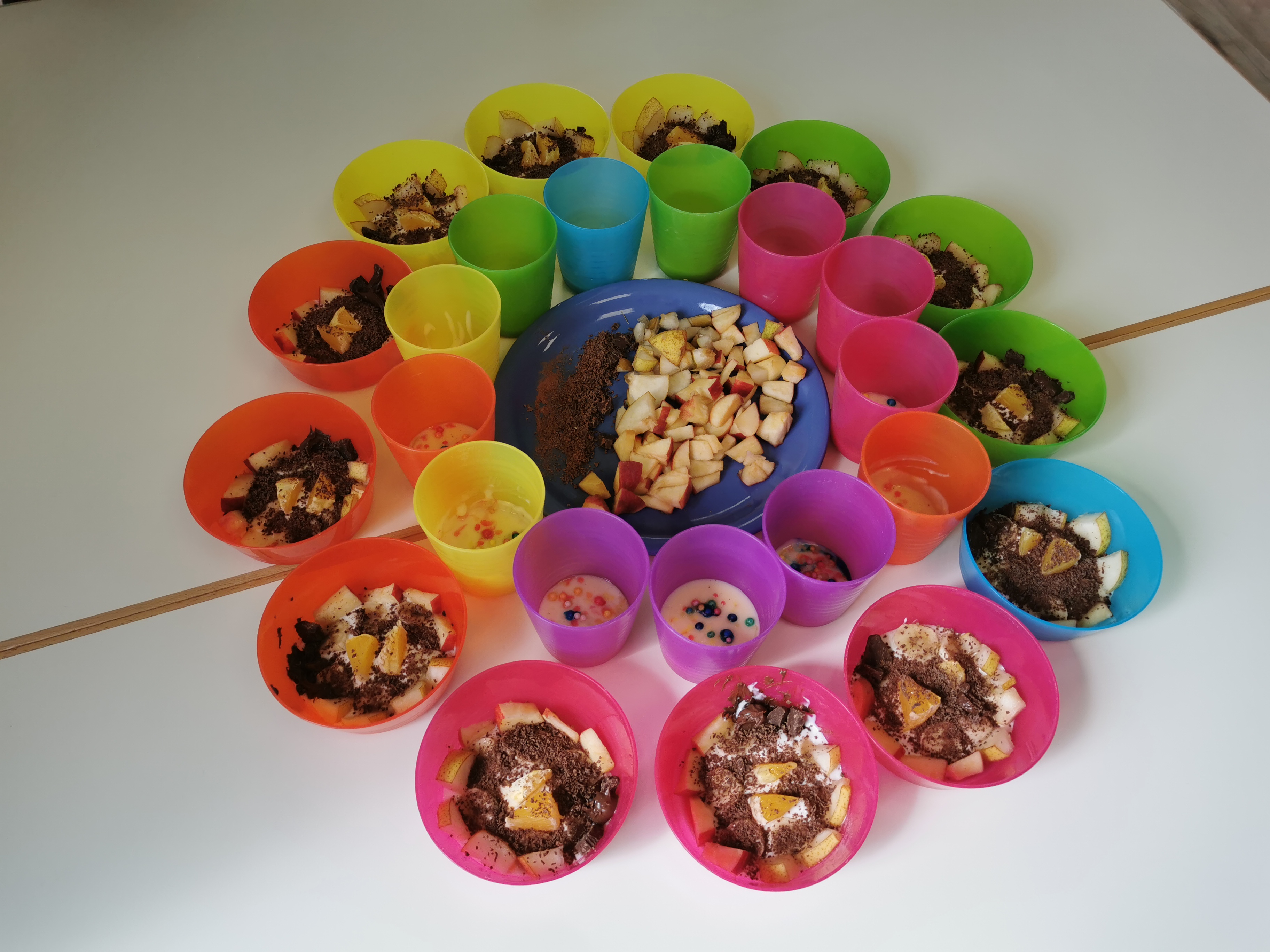 Es folgten zwei spannende Stunden mit Planung, Rezeptwahl und Mengenberechnung, viel Gewusel in der Küche, Dekorationsexperimente und schließlich die Zubereitung der kreativen Speisen.