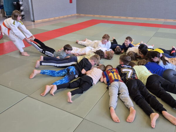 Mit dem TSV 1903 Gambach e.V. ging es die OSTERFEZ-er auf die Matte. Nach den Grundlagen der Fallschule, standen schließlich die ersten Würfe und Haltetechniken auf dem Programm. Stark beeindruckt waren die Kinder von dem großen Knall, wenn Trainer Andreas und seine Helfercrew die Fallübungen vormachten und auf die Matte aufschlugen.