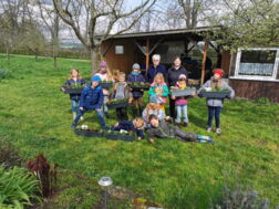 Auch dieses Jahr hatte sich wieder eine aufgeweckte Kinderschar im Lehrgarten des Obst- und Gartenbauvereins Münzenberg versammelt um mit Regina Kasten und Bianca Fassl den Frühling im Rahmen des OSTERFEZ Ferien(S)passes einzuläuten. Nach den morgendlichen Regenschauern, kam dann doch noch die Sonne ums Eck und kurz nach 10 Uhr bekam jedes Kind einen eigenen Blumenkasten, den es nach persönlichem Geschmack zunächst mit Erde und dann mit kunterbunten Frühlingsblumen bestücken konnte. „Schau mal, Traubenhyazinthen, Männertreu und so komische andere Namen haben wir gepflanzt“, berichten Hedda und Florine ganz enthusiastisch.“ Nachdem fast zwei Stunden lang mit Begeisterung gebuddelt, gepflanzt, dekoriert und auch auf dem großen Gartengelände herumgetollt und gespielt wurde, präsentierten die Kinder stolz ihr Ergebnis.