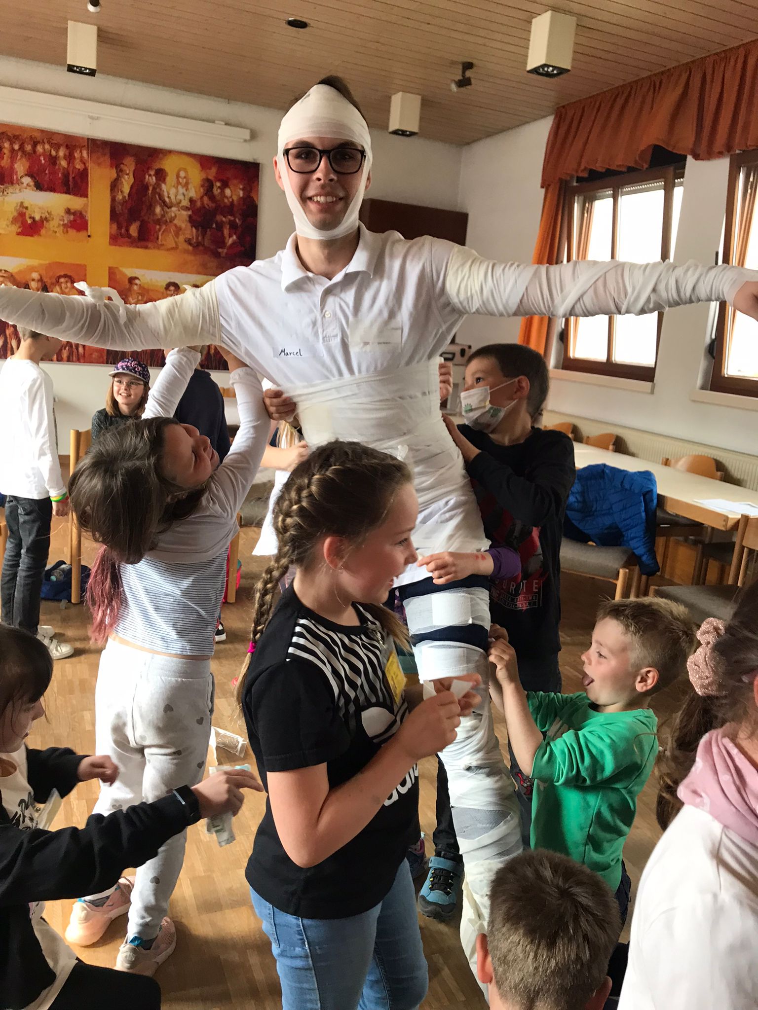 Spannend und ziemlich lustig ging es am letzten Freitag beim „Pflasterdiplom“ des DRK Münzenberg zu, das im Rahmen des OSTERFEZ-Ferien(S)passes in Gambach stattfand.