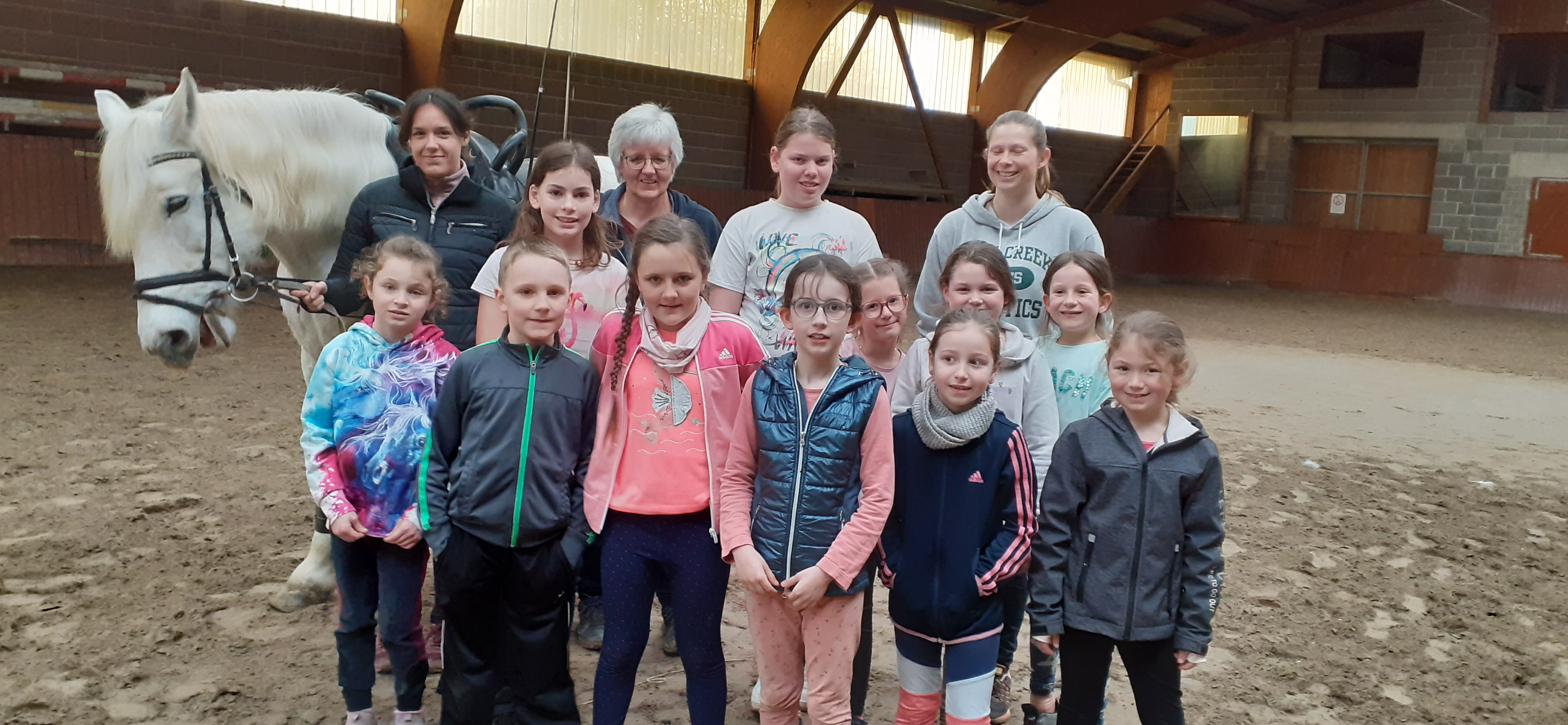 Viel Geduld hatte Voltigier-Profi „Ronja“ mit den 14 OsterFEZ-Kindern, die den Weg in die Reithalle des Reit- und Fahrvereins Münzenberg (RuF) gefunden hatten. Kein Wunder, dass ihr die Herzen zuflogen. Michaela Lukasch gab mit Johanna Eiser und Seline Lukasch den Pferdesport-Interessierten Einblicke in das Verhalten der Tiere und die Pferdepflege. Das Betreuer-Trio ermöglichte es den Kindern, selbst erste Erfahrungen beim Voltigieren zu machen. Nach Übungen auf dem Holz-Turnierpferd waren natürlich die Runden mit und auf „Ronja“ der Höhepunkt des RuF-Angebots im Rahmen des OsterFEZ der Stadt Münzenberg. Kurzum: Die OsterFEZ-Kinder waren von ihrer Voltigier-Schnupperstunde begeistert.