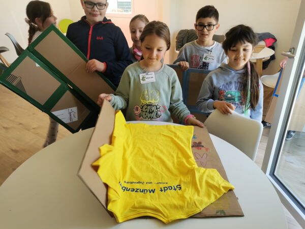 Einen tollen Haushaltshelfer bastelten die OSTERFEZ-Kinder im JUZ Gambach. Die Faltmaschine beschleunigt und vereinfacht das Falten von T-Shirts ganz enorm. Zack – in fünf Sekunden ist das Shirt akkurat gefaltet und bereit für den Kleiderschrank. Bleibt nur die Frage, ob die Konstrukteure künftig ihre T-Shirts selbst falten, oder ob sie die Faltmaschine ihren Eltern ins Osternest legen…