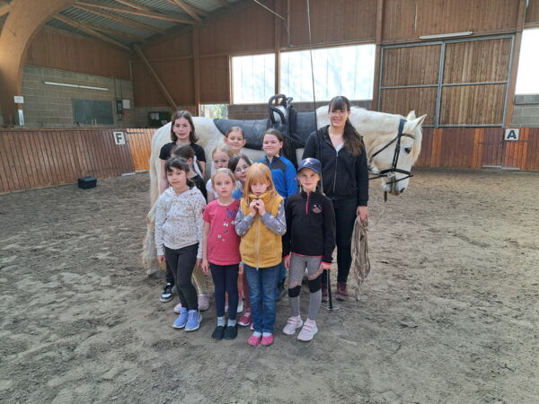 Nach Aufwärmtraining und einer kurzen Einführung durften die 16 OSTERFEZER sich in der Reithalle des Reit- und Fahrvereins Münzenberg (RuF) mit Voltigier-Pferd „Ronja“ anfreunden. Gemeinsam mit der geduldigen „Ronja“ probierten die Teilnehmenden Pflicht- und Kürelemente des Voltigiersports aus. Beim Bock-Training ging es mit der Erprobung von Pflicht- und Kürelemente weiter. Die Kinder durften auf dem Holz-Turnierpferd eigene Übungen testen und umsetzen. Michaela Lukasch gab mit Johanna Vogler und Seline Lukasch den Pferdesport-Interessierten Einblicke in das Verhalten der Tiere und die Pferdepflege. Wie es sich für Voltigierer gehört, schloss das Schnuppertraining beim RuF mit „Ronja“. Die Kinder putzten und striegelten ihre vierbeinige Trainingspartnerin. Die Kinder hatten viel Spaß und gingen froh nach Hause.