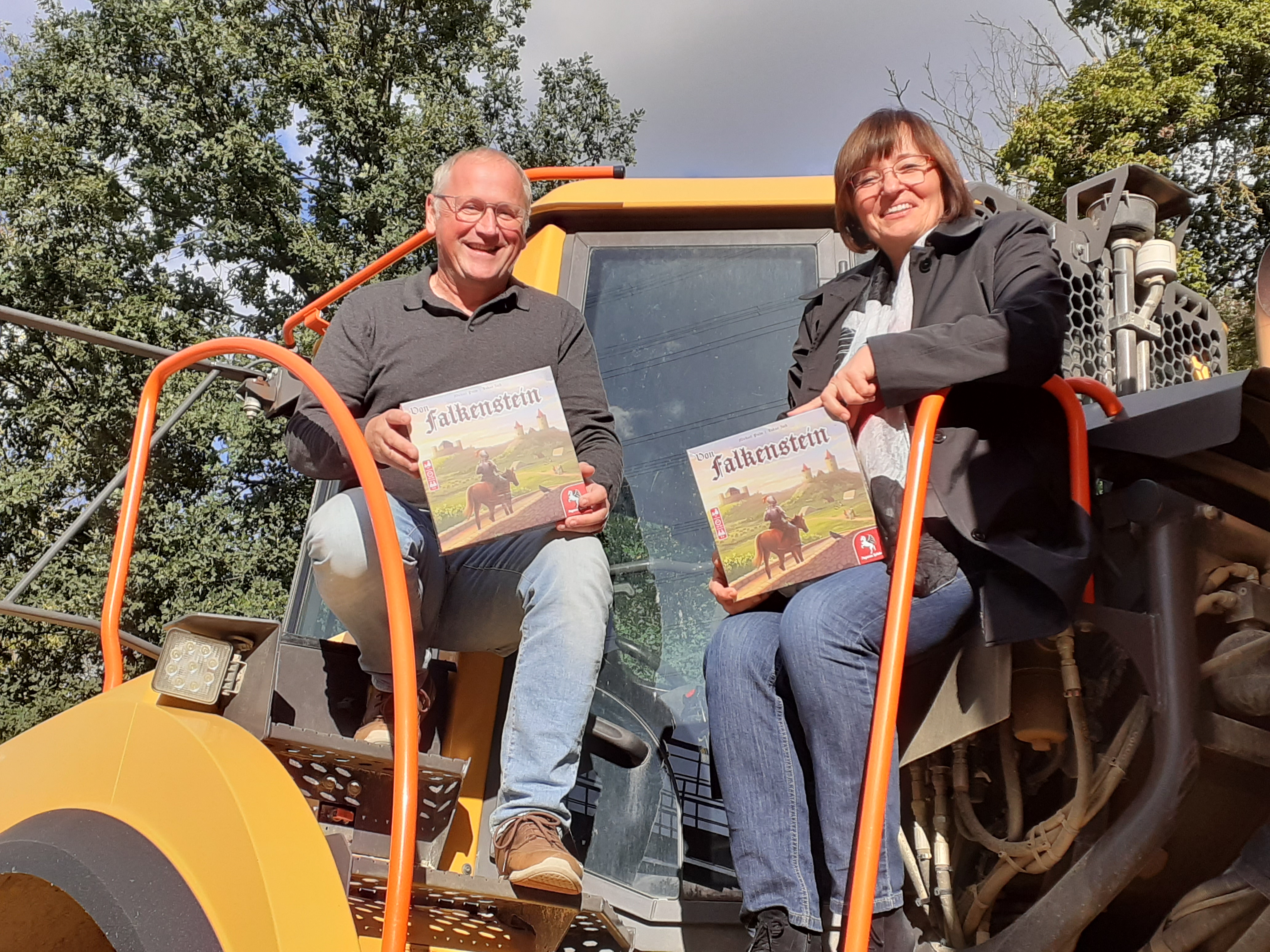 Mit der zuständigen Kommune – zunächst die Gemeinde Gambach und seit 50 Jahren die Stadt Münzenberg sind die Quarzwerke partnerschaftlich eng verbunden. Das zeigte sich zuletzt bei der Produktion des gemeinsam mit dem Friedberger Spieleverlag Pegasus entwickelten kooperativen Familienspiels „Von Falkenstein“. Als Dank für die tatkräftige Unterstützung des Jubiläums-Projekts brachte die Münzenberger Bürgermeisterin Dr. Isabell Tammer bei Werksleiter Holger Hachenburger „Von Falkenstein“ persönlich im Quarzwerk Gambach vorbei.