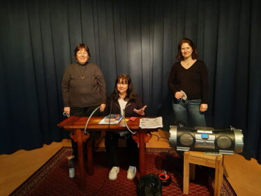 Etwas auf die Ohren gab es für die Kinder der Jahrgangsstufe 4 der Johanniterschule im Bürgerhaus Gambach beziehungsweise der Kombi-Klasse 3/4 in der Alten Synagoge Münzenberg. Mit einer Lesung stimmte die bekannte Kinder- und Jugendbuchautorin Ursula Flacke (Mitte) ihr junges Publikum auf den anstehenden „Wörterwahnsinn“ in Münzenberg ein.