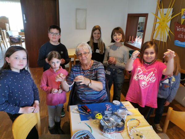 Hochkonzentriert werkelten zehn Kinder beim Herstellen ihres eigenen Perlenschmucks. Sogar der leckere Kuchen konnte zunächst niemanden locken. Beim OSTERFEZ-Angebot der katholischen Kirchengemeinde Mariä Himmelfahrt war es lange Zeit mucksmäuschenstill, so sehr vertieft waren die Teilnehmenden in ihre Arbeit. Ulrike Dotzauer gab wertvolle Tipps und wenn nötig auch Hilfestellung. Organisatorin Heidelinde Neudörfl sorgte mit Peter Dotzauer und Roswitha Böhringer dafür, dass alle Kinder sich rundum wohl fühlten und nach einem gelungenen Nachmittag glücklich nach Hause gehen konnten. Die wunderschönen Schmuckkreationen kommen künftig garantiert oft zum Einsatz.
