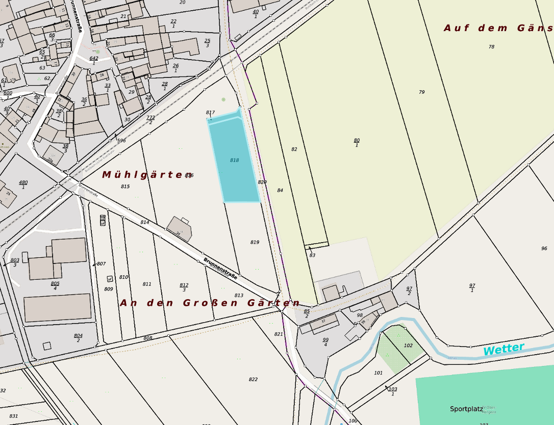 | Lage | Nutzart | Flur | Nr. | Größe m² |
