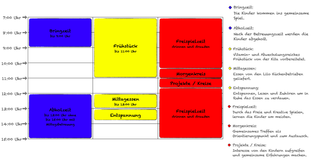 - tägliche Bildungsangebote, für die sich die Kinder eigenverantwortlich nach Ihren Interessen entscheiden können