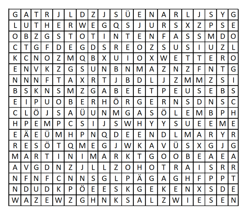 Lösungen vom 24.04.2020: Wörterrätsel: GAMBACH, MÜNZENBERG, OBERHÖRGERN,TRAIS, WETTER, BURGRUINE, MUSEUMSBAHN, GEOLOGISCHERGARTEN, GLOCKENBECHERMANN, STEINBERG, SALZWIESEN, MARTINIMARKT, LUTHERWEG, GALGEN, Lateinrätsel: Sieht aus wie Latein, ist es aber nicht.