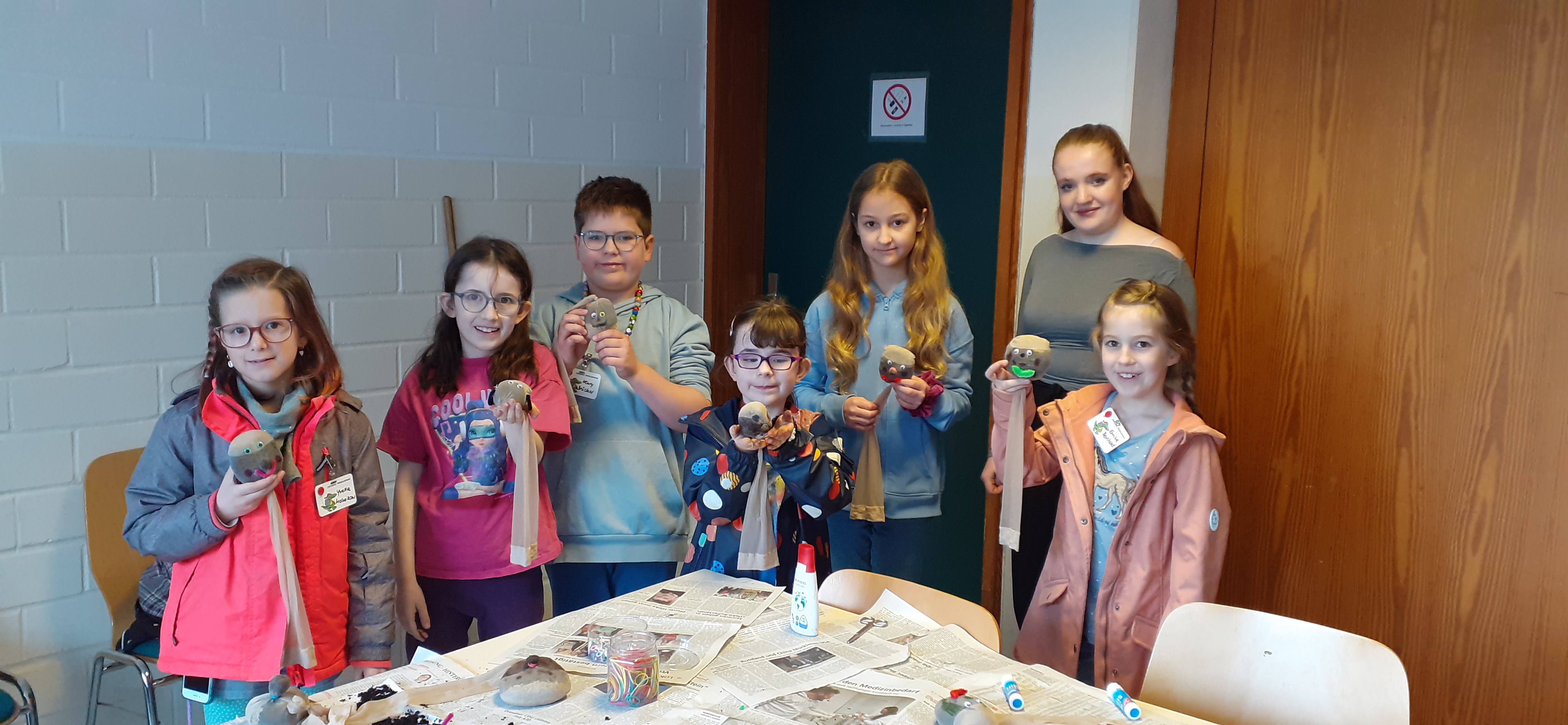 Noch haben sie alle eine Glatze. Doch das wird sich in den nächsten Tagen ändern. Erst kommt zarter grüner Flaum und schließlich wächst den Glatzköpfen ein waschechter Rasen auf dem Haupt. Gemeinsam mit Anna und Julia bastelten 6 OsterFEZ-Kinder im Kulturhaus Trais ihre persönlichen supercoolen „Grasi‘s“.