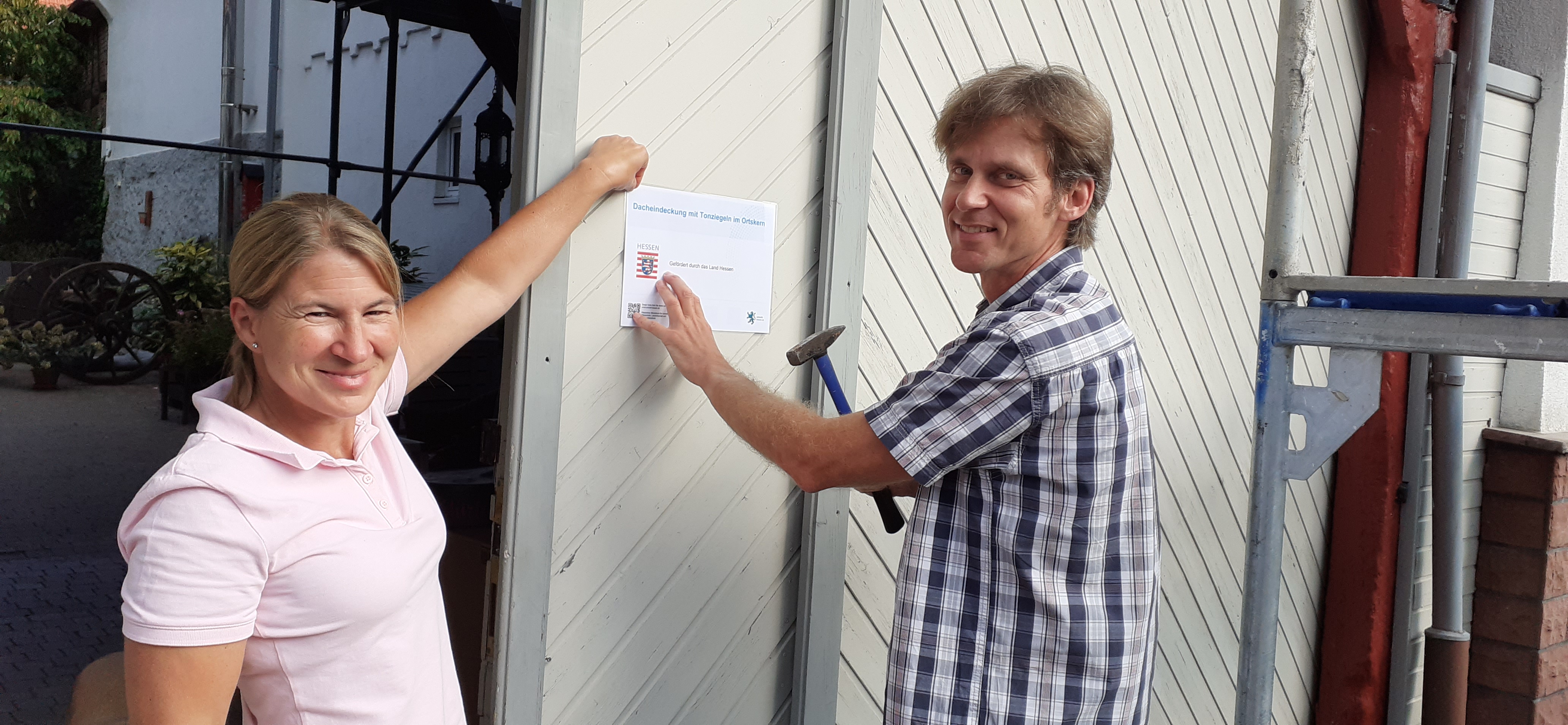 An den Kosten im hohen 5-stelligen Bereich beteiligt sich auch der Wetteraukreis im Rahmen der Privatförderung des Dorfentwicklungsprogramms des Wetteraukreises. „Wir freuen uns über die finanzielle Förderung bei den anstehenden Dachdeckerarbeiten, das erleichtert unser Bestreben, ein Stück Geschichte für die Nachwelt zu erhalten und erlebbar zu machen.“, so Ralf Frenger. Von Anfang an waren Corina Sauerwein vom Denkmalschutz und Christina Braum von der Fachstelle Strukturförderung Wetteraukreis eingebunden. Erheblichen Anteil an den Planungen des IKEK hatten auch das Land Hessen und externe Fachleute wie Dr. Andrea Soboth und André Haußmann vom Team 360°. Dank der außerordentlich guten und kreativen Zusammenarbeit zwischen Familie Frenger, der Kommune sowie der Fachstelle Strukturförderung des Wetteraukreises ist in der Brunnenstraße bald ein tolles Ergebnis erfolgreicher Dorfentwicklung zu sehen.